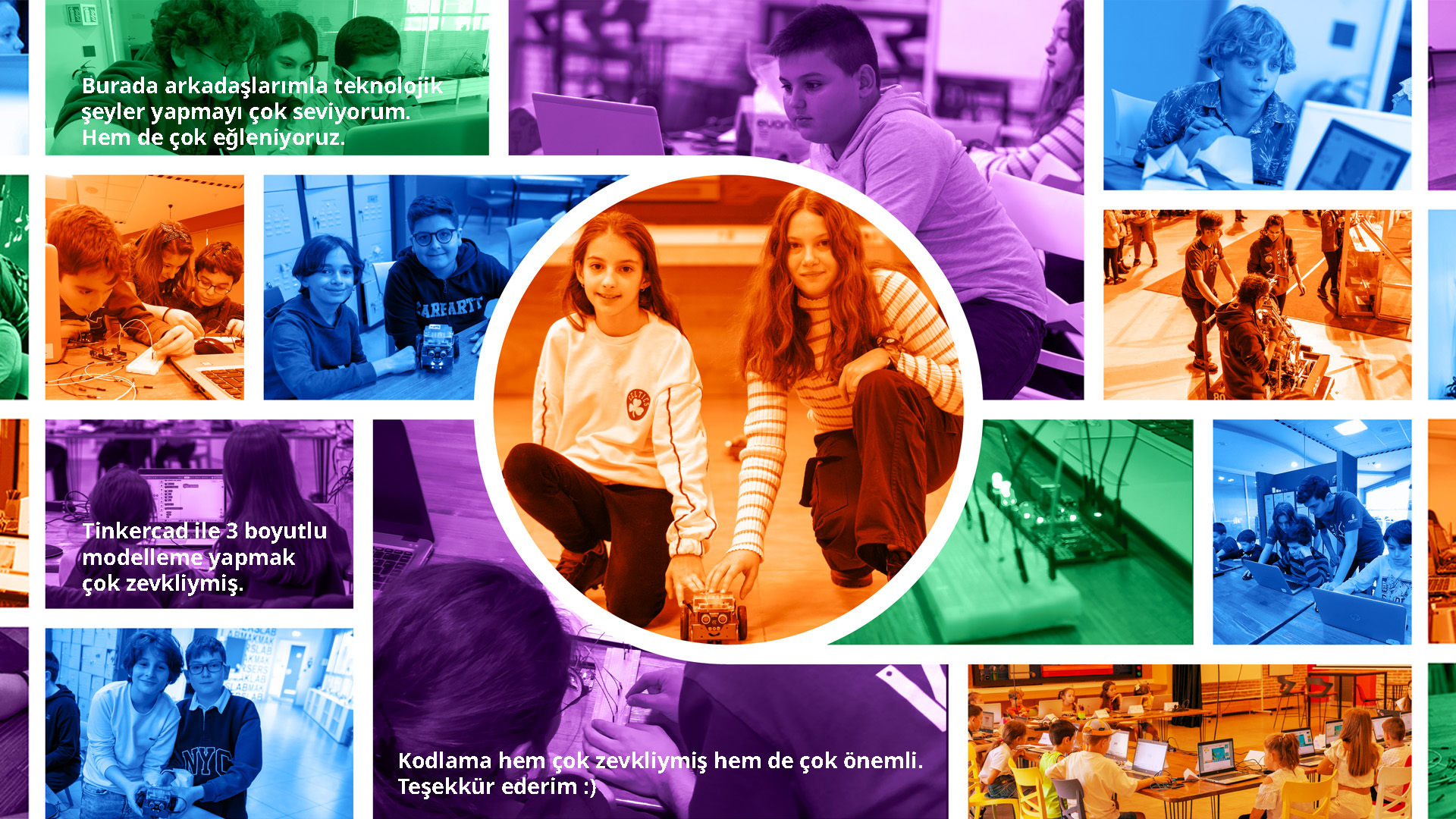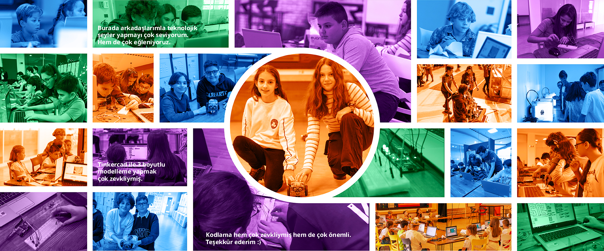 Yarınları inşa edecek 8-18 yaş arası çocuklara kodlama, elektronik, robotik, uygulama tasarımı ve geliştirme eğitimleri veriliyor ve çalışmalara kız çocuklarının katılması bilhassa teşvik ediliyor.