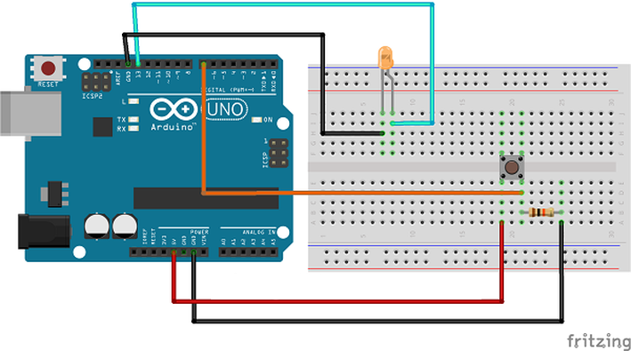 1 sinyali geldiği sürece devredeki led yanacak, butona basılmadığında ise 0 sinyali gideceği için led sönecektir.