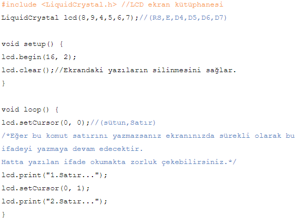 Lcd ekranın düzgün çalışabilmesi için #include kütüphanesinin eklenmesi gerekmektedir.