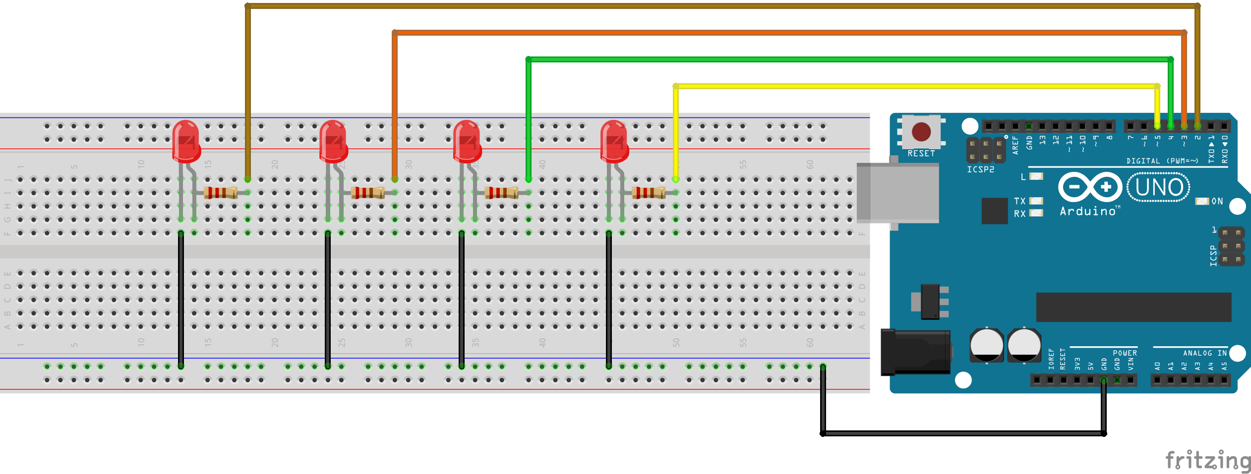 Sadece direncin bacağının bağlı olduğu deliklerden çıkan kabloları Arduino kart üzerindeki dijital pinlere bağlayalım.