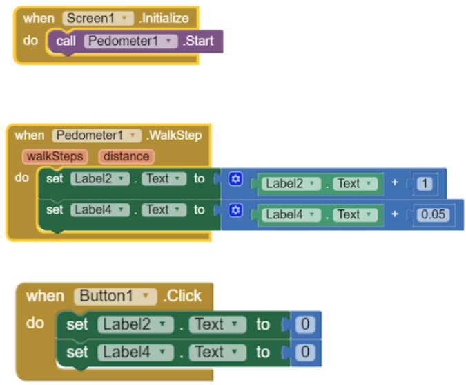 Uygulama açıldığında Adım Sensörünün başlatılması için aşağıdaki bloklar eklenir.