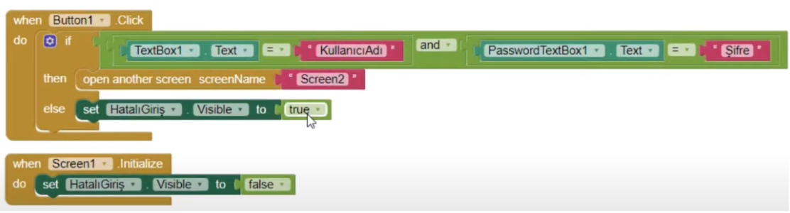Bu sahnemiz başarılı giriş yaptığımızda açılacak. İçinde yalnızca 1 adet label olacak ve text kısmına “Giriş yapıldı.” yazacak.