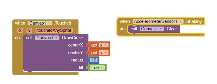 Bu adımda telefonu salladığımızda ekranın temizlenmesi için gerekli olan kod bloğunu Canvas1 aracına tıklayarak alalım.