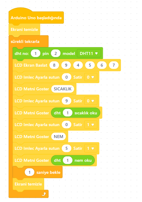 Son olarak da ekranı temizle bloğunu ekliyoruz. Böylelikle yeni değer geldiğinde eks değerlerle karışmamış olacak.