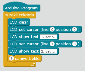 LCD ekranda yazı görünmesini sağlayacak kodları yazalım.