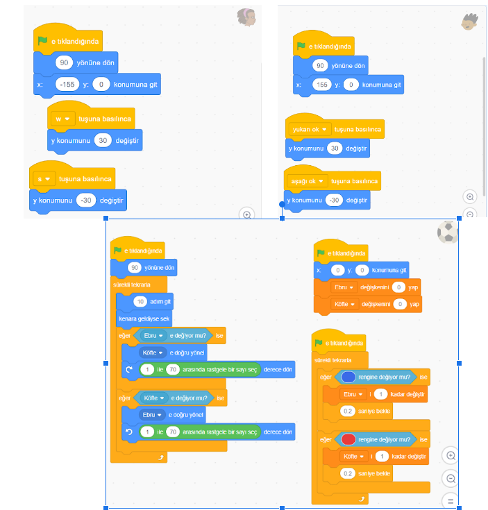 Kukla ekle seçeneğine tıklanarak bir futbol topu seçilir ve o kuklaya resimdeki kodlar yazılır.