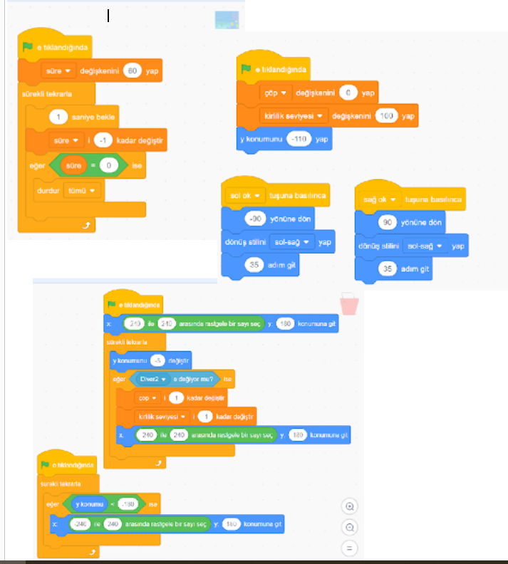 Sonrasında deniz kirliliğine sebep olabilecek kuklalar eklenir ve hepsine resimdeki kodlar yazılır.